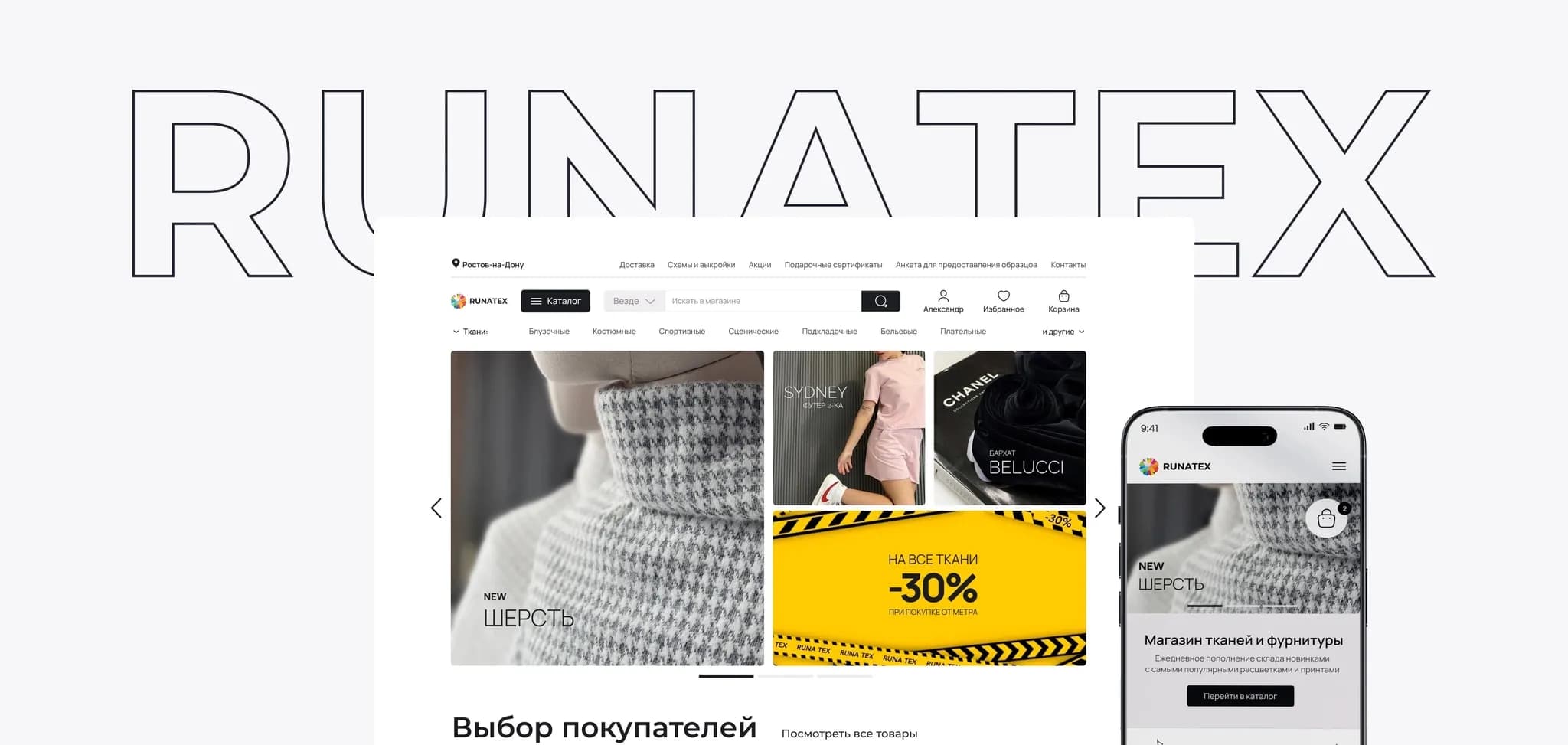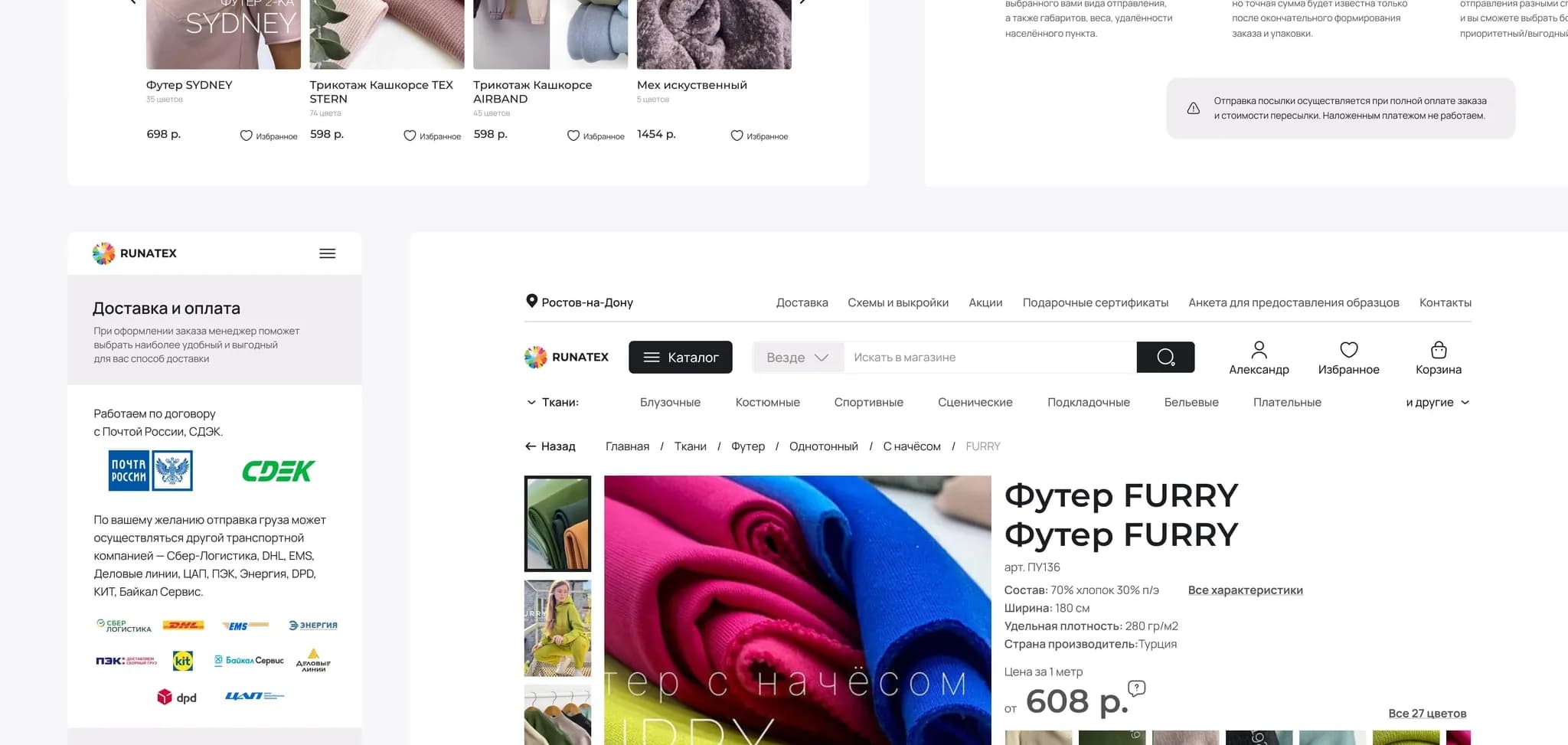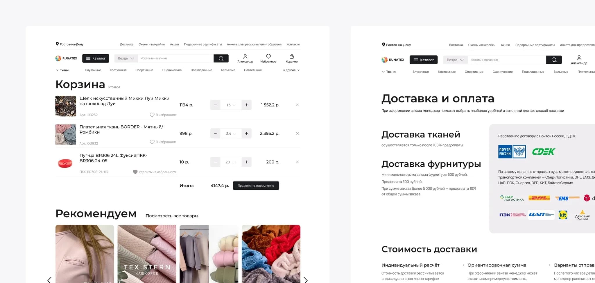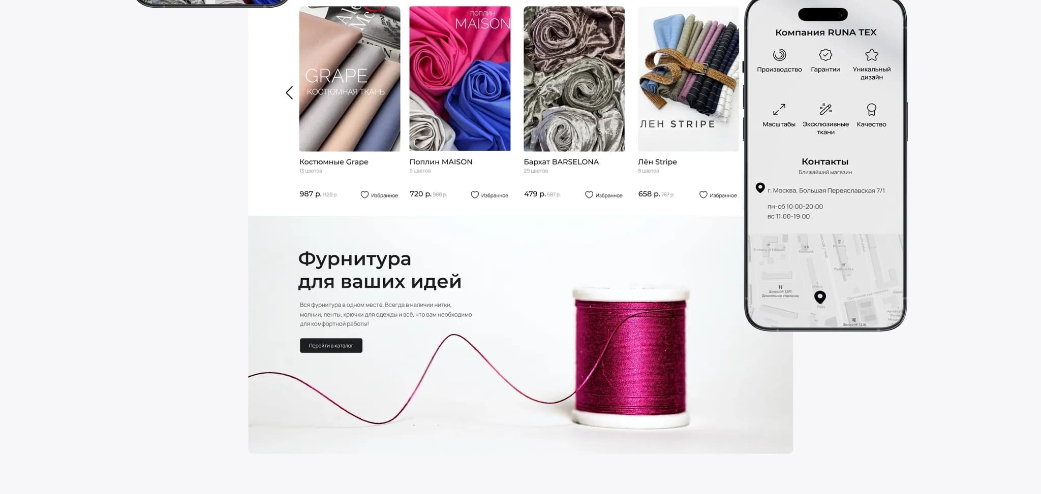 Наш заказчик — крупный поставщик тканей и фурнитуры. У «Руны» есть собственное швейное производство, оптовые и розничные офлайн-точки в Москве, Питере, Ростове-на-Дону. А еще — свой сайт, который нуждается в техподдержке.