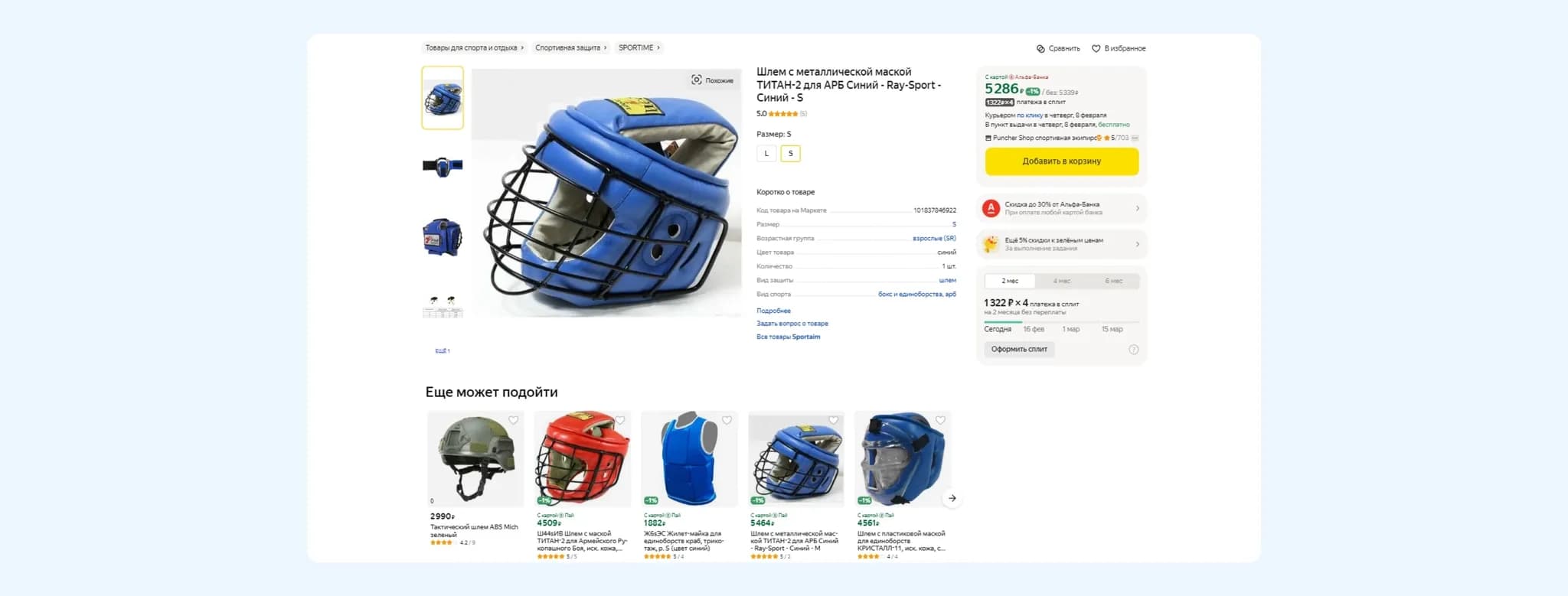 Мы подсчитали: менеджеры магазина экономят от 100 часов в месяц на задачах такого типа. Карточки товаров появляются не только на sportaim-shop.ru, но и в профиле на Яндекс Маркете.